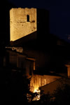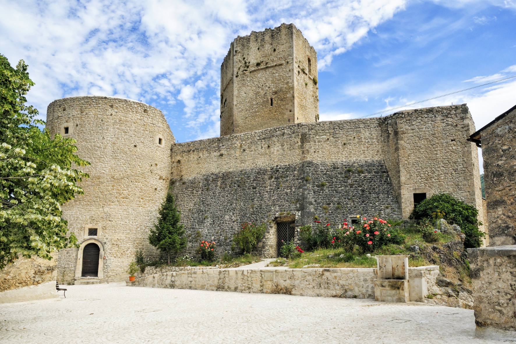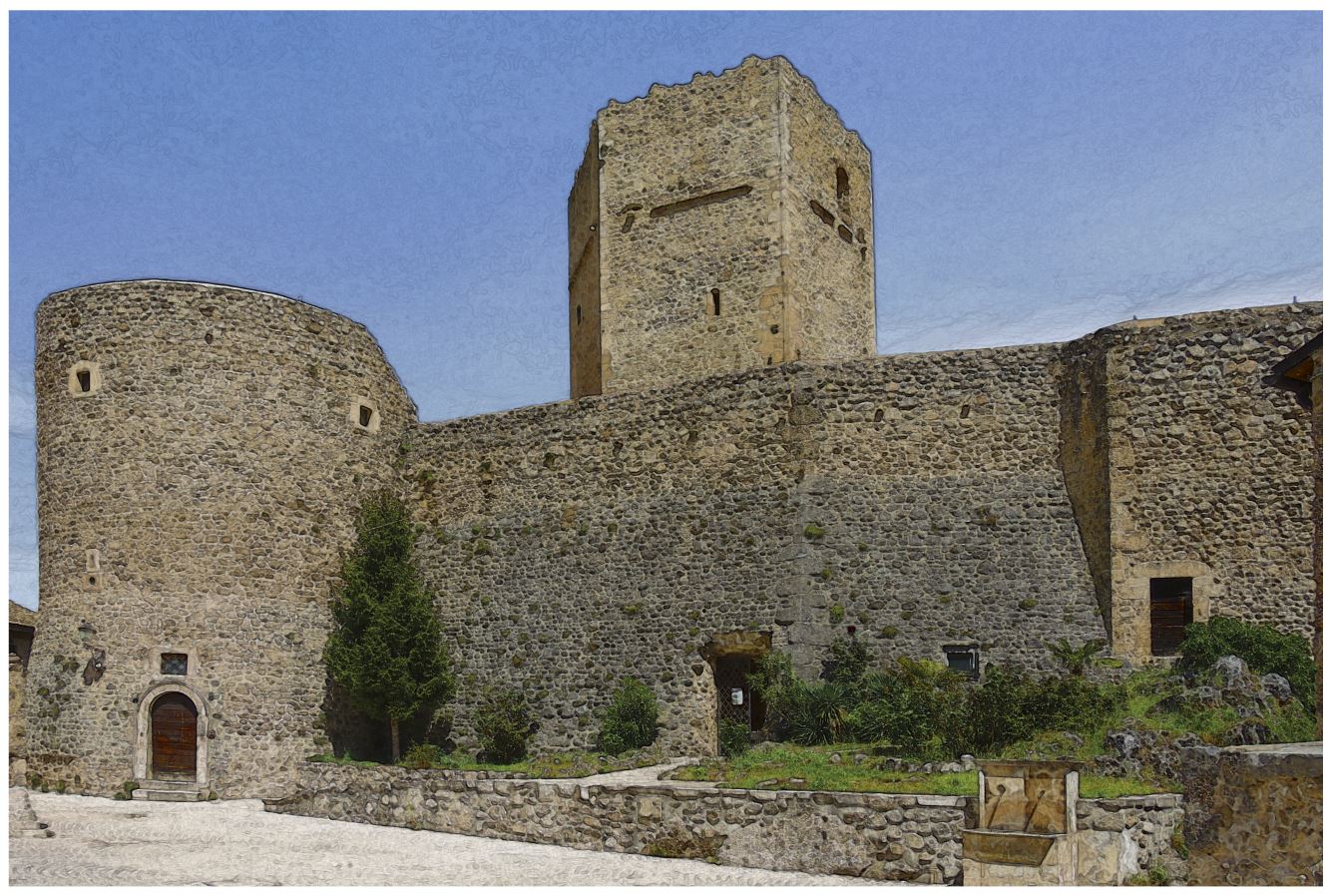 IL CASTELLOIl castello di Pettorano sul Gizio fa parte di un sistema di fortificazione comprendente i castelli circostanti di Popoli, Pacentro, Raiano, Vittorito, Prezza e Anversa. Originariamente doveva essere composto solo dalla torre centrale di avvistamento (puntone) a pianta pentagonale, con la punta diretta verso SO, intorno alla quale fu innalzata, in epoca angioina, l’attuale cinta muraria con le superstiti due torri circolari. Delle due torri, a base scarpata per attutire l’impatto di eventuali proiettili, quella posta a SO è di maggiori dimensioni rispetto a quella posta a NO . A SE invece si può osservare una torre quadrilatera.